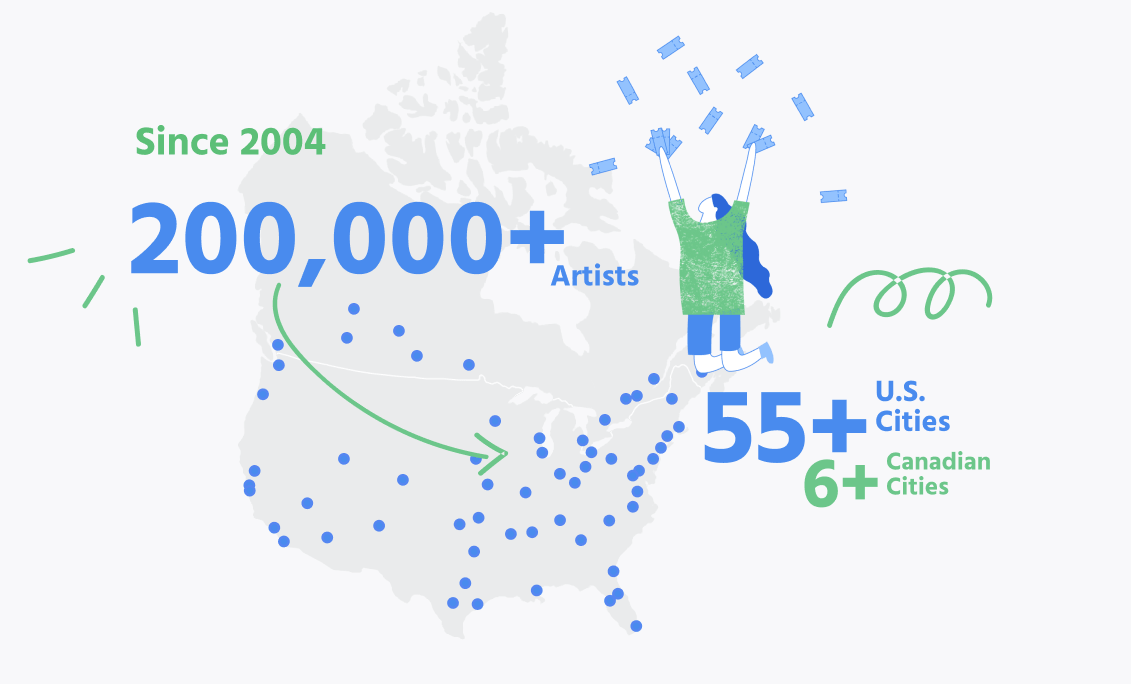 Afton specializes in booking and promoting local emerging musicians. They provide tools for artists to promote their shows and sell tickets online.