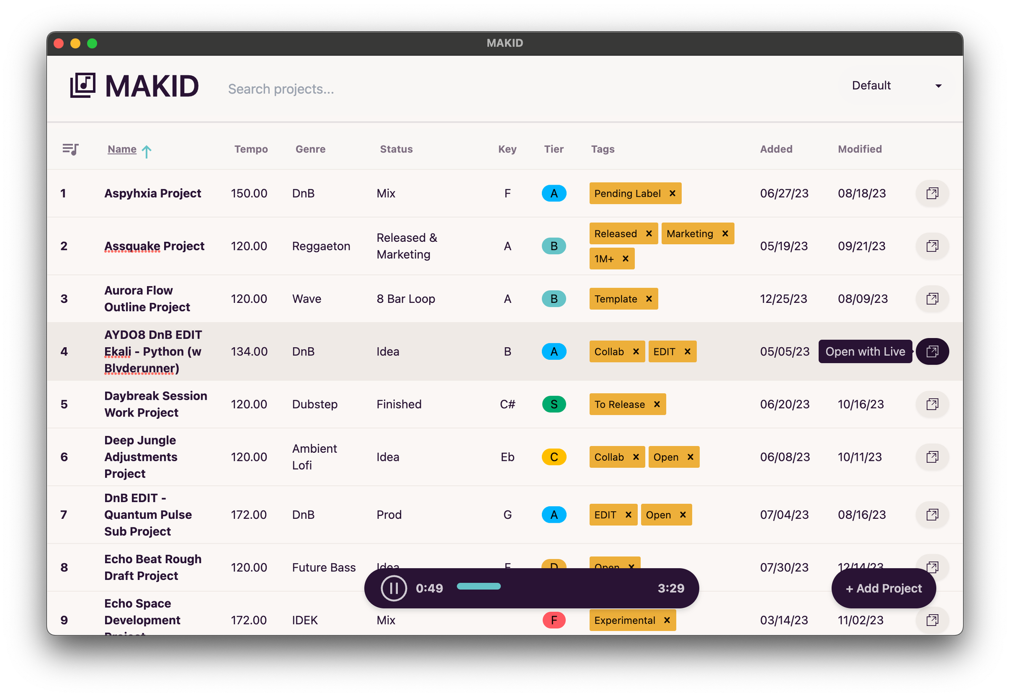 MAKID is an innovative file management system designed specifically for Ableton Live users. It simplifies project organization by offering a streamlined, intuitive interface that automatically categorizes and tracks your Ableton projects. With MAKID, you can preview your tracks without opening Ableton, set project destinations with ease, and even edit .als files directly. It's a powerful tool that enhances your music production workflow, and it's available for free. Check it out!