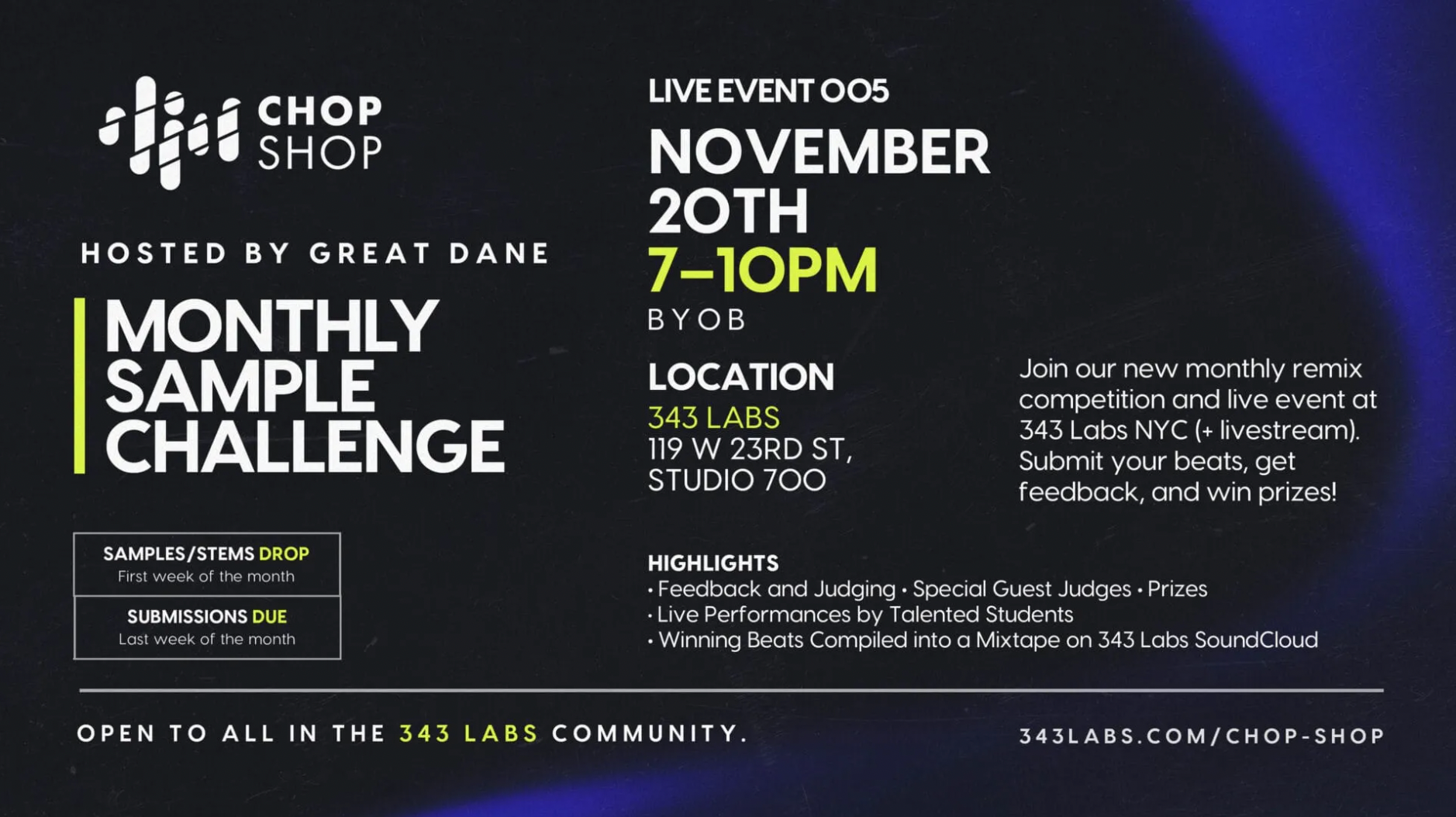 We've got tons of events this month, including a feedback session, free masterclass and another Chop Shop on Nov. 20th!