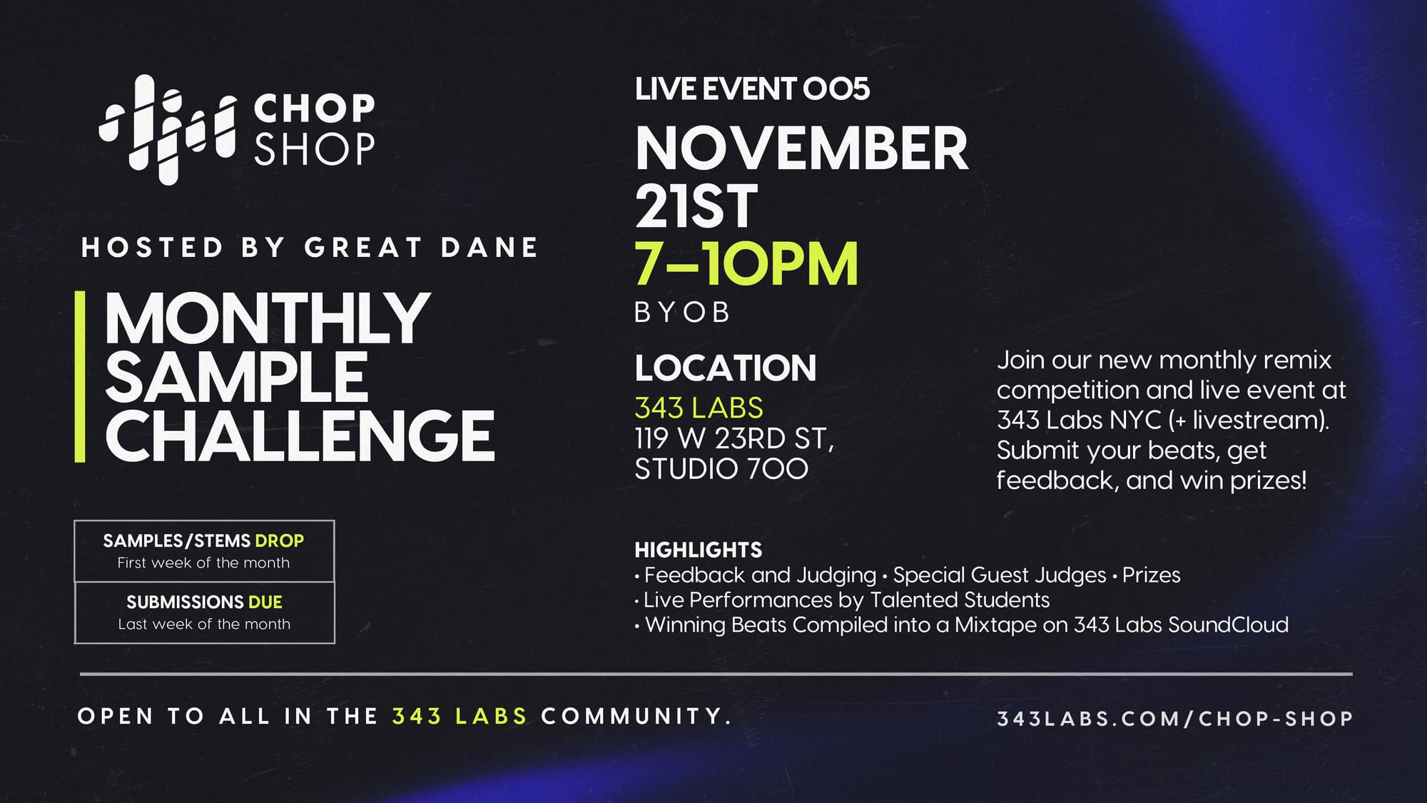 We've got many events this month, including a feedback session, a free masterclass, and another Chop Shop on Nov. 21st!